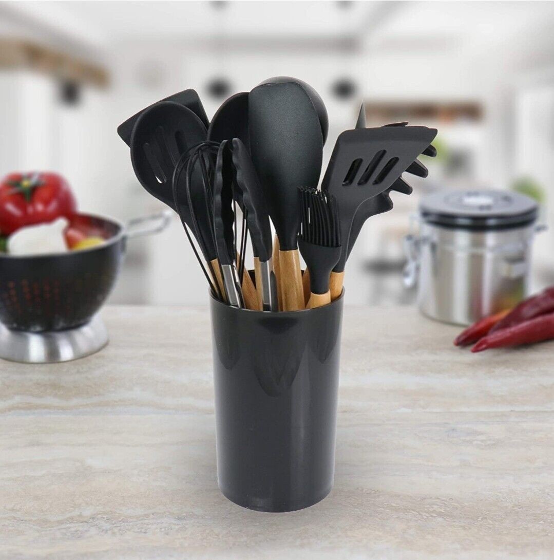 12-PCS Kitchen Silicone Utensil Set - Non Stick Cooking Utensils Wooden Handle