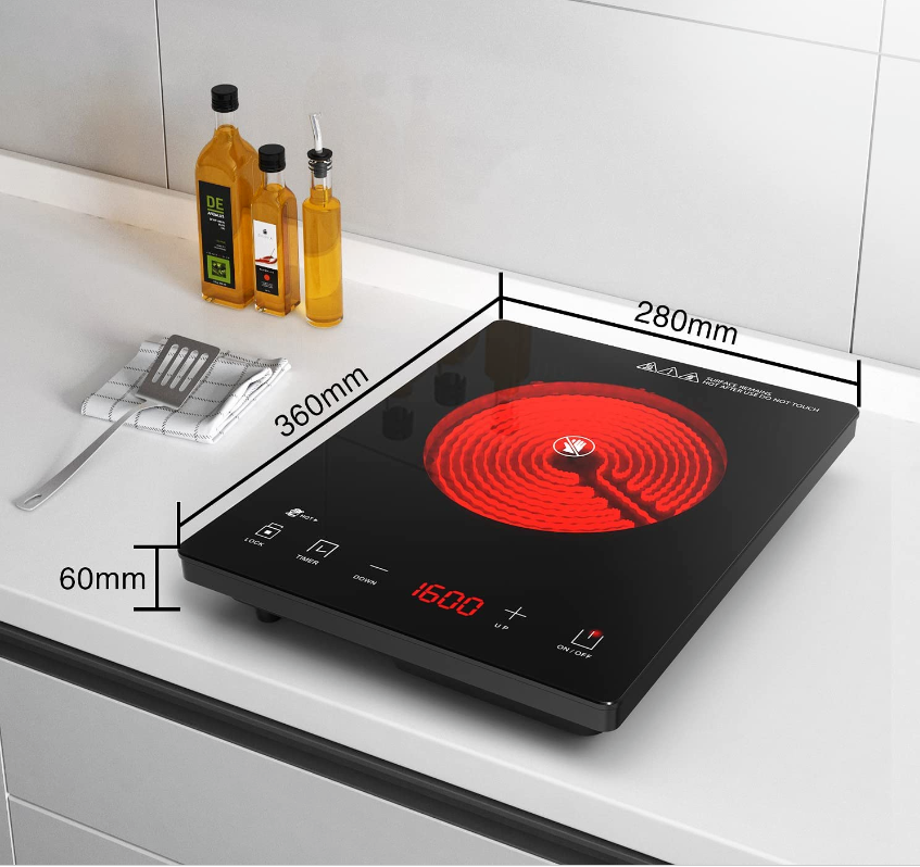 • 【Ceramic Glass Easy Clean】The panel of the Electric Ceramic Burner is made of ceramic glass. The integrated panel, high-strength ceramic glass, has excellent heat resistance and impact performance.The ceramic glass panel is stain-resistant, and can be wiped with a towel or paper towel.After Electric Burner is used, there will be residual temperature. Please clean the product after the residual temperature dissipates.