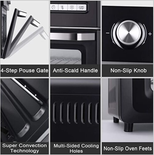 • 【Quartz Heat&Air Fry Technology】--Quartz Heat Technology delivers 40% more even heat for superior cooking results and preheats faster,and you can enjoy air fried meals with up to 85% less fat than traditionally fried foods. Air fry feature may require more cooking time than standalone air fryers.