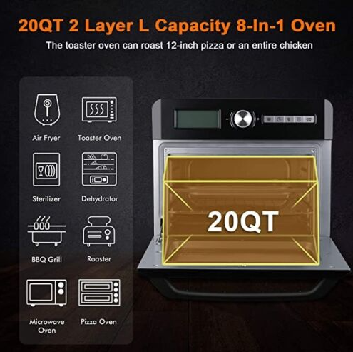 20 Quart Large Countertop Oven Air Fryer 10-in-1 Large Convection Bake Slow Cook