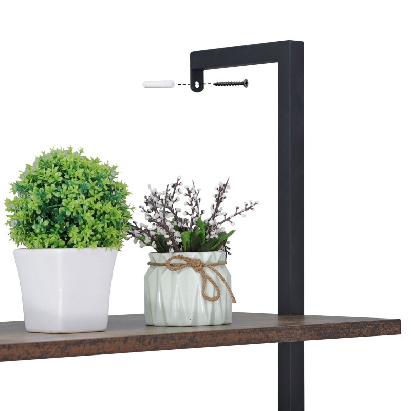 4 Tier Pipe Bookshelf Wall Mount Shelf Floating Bookcase Industrial Metal Frame