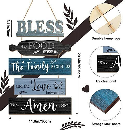 Bless The Food Before Us Sign Farmhouse Kitchen Wall Decor Rustic Dining Room...