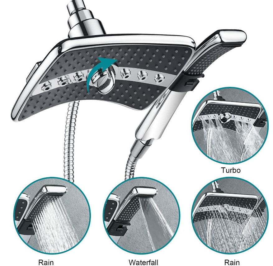 High pressure rain fall shower heads with handheld spray, fixed shower head with multi spray settings, enjoy a spa shower at home