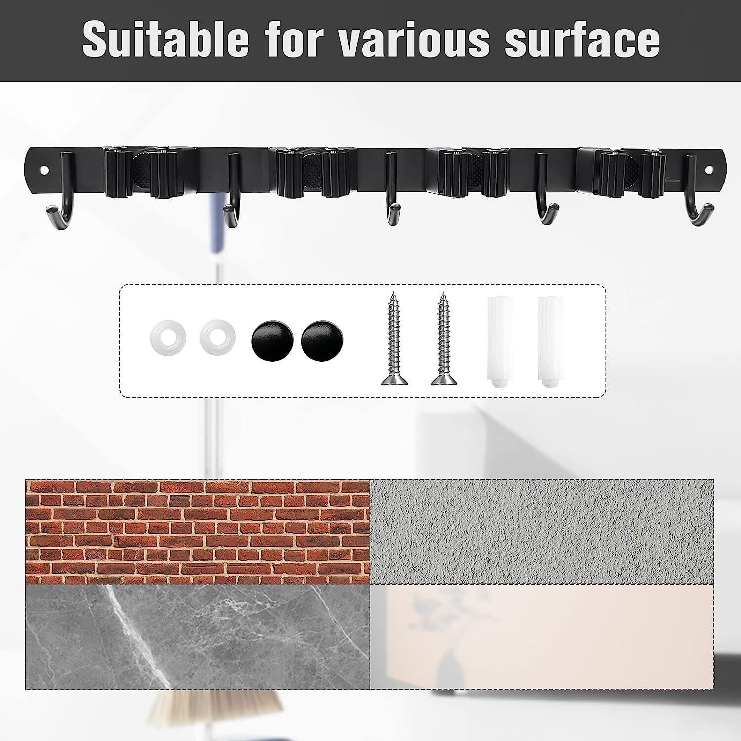 Broom holder wall mount black