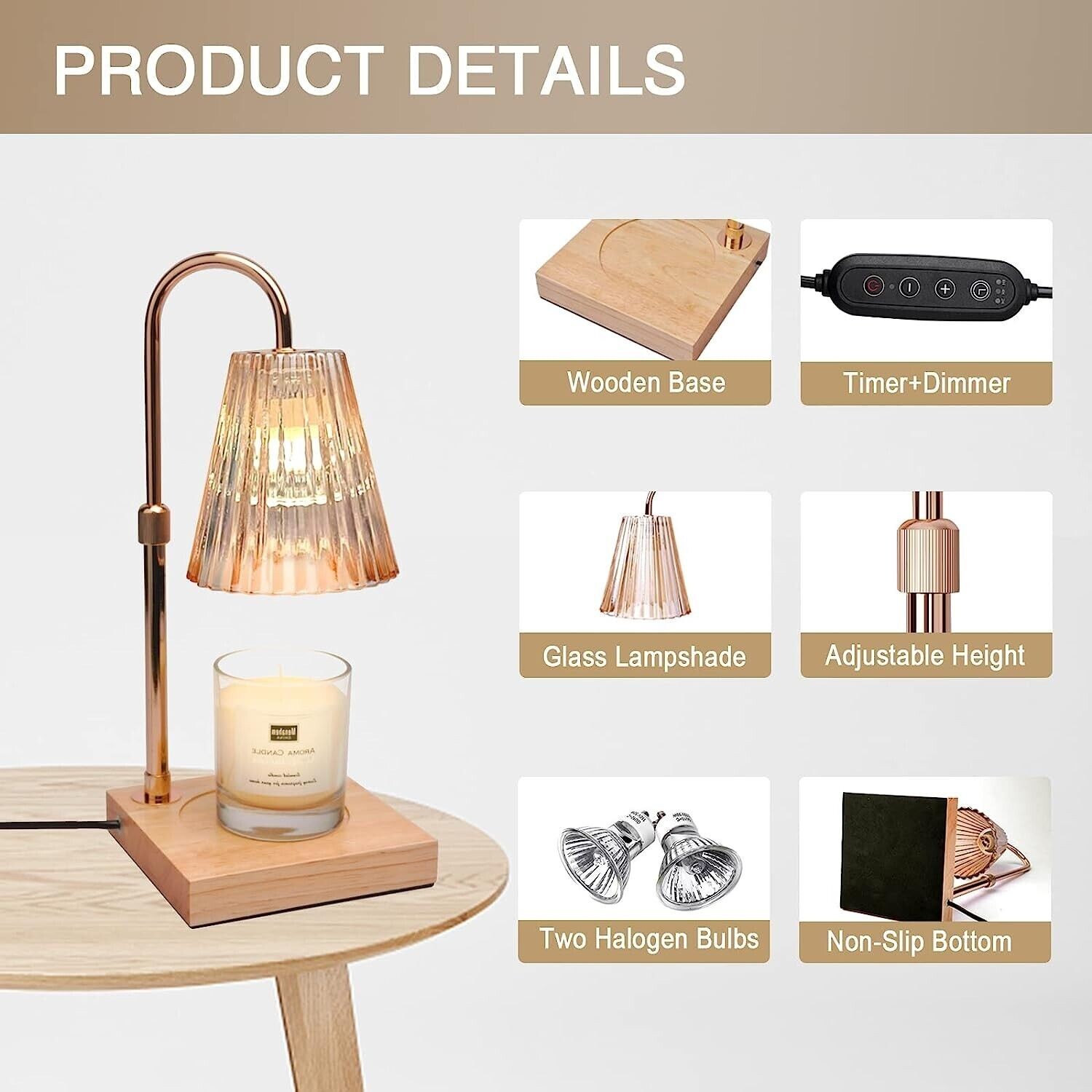 Candle Warmer Lamp with Timer(2H/4H/8H),Adjustable Height&Brightness Candle Lamp