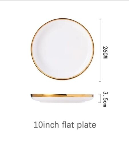 Ceramic Tableware Dinner Set Round White Color With Gold Rim Plates For 1 Person