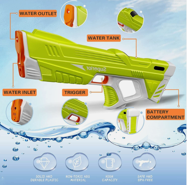 【Durability】: The kids toy electric water gun refers a durable water toy to how well the water toy can withstand regular use and exposure to water, which will last longer and provide more value to the kids. Additionally, a durable water toys can be more environmentally friendly than traditional, disposable water toys.