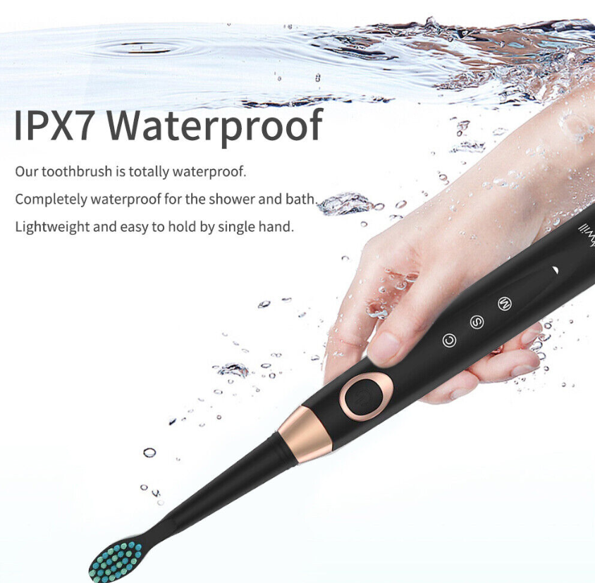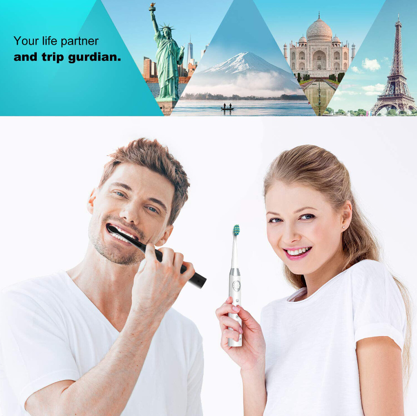 •  Sleek Lightweight Design & IPX 7 Waterproof Rating - These stylish toothbrushes are made for home or travel! It is very easy and convenient to pack them in your travel bag with brush head protective covers included. With them being waterproof feel free to use them in the shower.