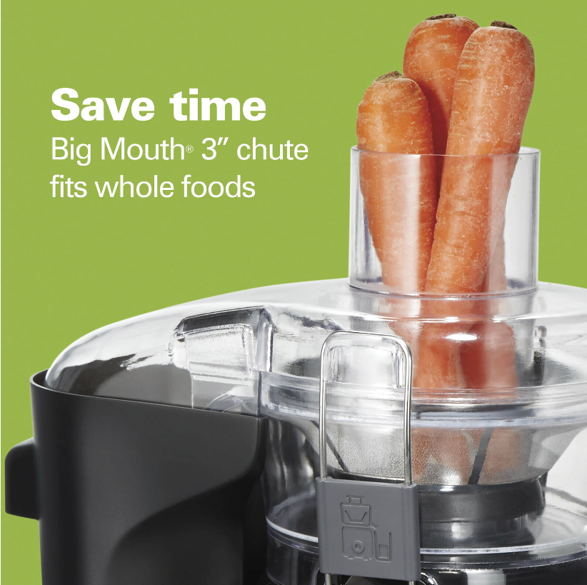 Juicing and blending go hand-in-hand as part of a healthy lifestyle, and now you can juice and blend with one space-saving appliance. Thanks to its versatile 2-in-1 design, the Hamilton Beach Big Mouth® Juice & Blend 2-in-1 Juicer and Blender makes fresh juice from whole fruits and vegetables, which you can add to all your favorite blended recipes. You’ll save time as you juice because the 3" Big Mouth® chute fits whole produce, and by replacing the juice extractor attachment with the 20 oz. blender jar, you can juice directly into it — no need to transfer juice from one container to another. With this versatile 2-in-1 appliance, you can go from making simple juice to creating a wide variety of flavorful smoothies, shakes, cocktails or slushies. You'll easily power through tough ingredients like hard produce and ice with its 800 watt, 2 speed motor and pulse. Amp up your nutrition and add more flavor to your life today — recipes are included to get you started. Includes patented Easy Sweep™ cleaning tool and removable, dishwasher safe parts for easy cleanup. Backed by Hamilton Beach, the #1 brand in juice extractors