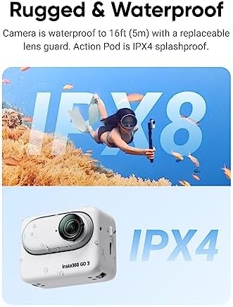 Insta360 GO 3 (64GB) – Small & Lightweight Action Camera, Portable and Versatile, Hands-Free POV, Mount Anywhere, Stabilization, Multifunctional Action Pod, Waterproof, for Travel, Sports, Vlog