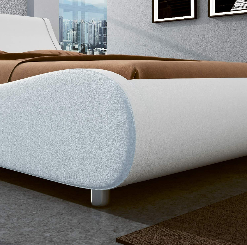 【Bedroom Refresh】 Wave-like silhouette of Our low profile bed is one of a kind addition to any contemporary bedroom. This upholstered platform bed is fully wrapped in soft PU leather for ultimate comfort and looks, and features a slatted base.