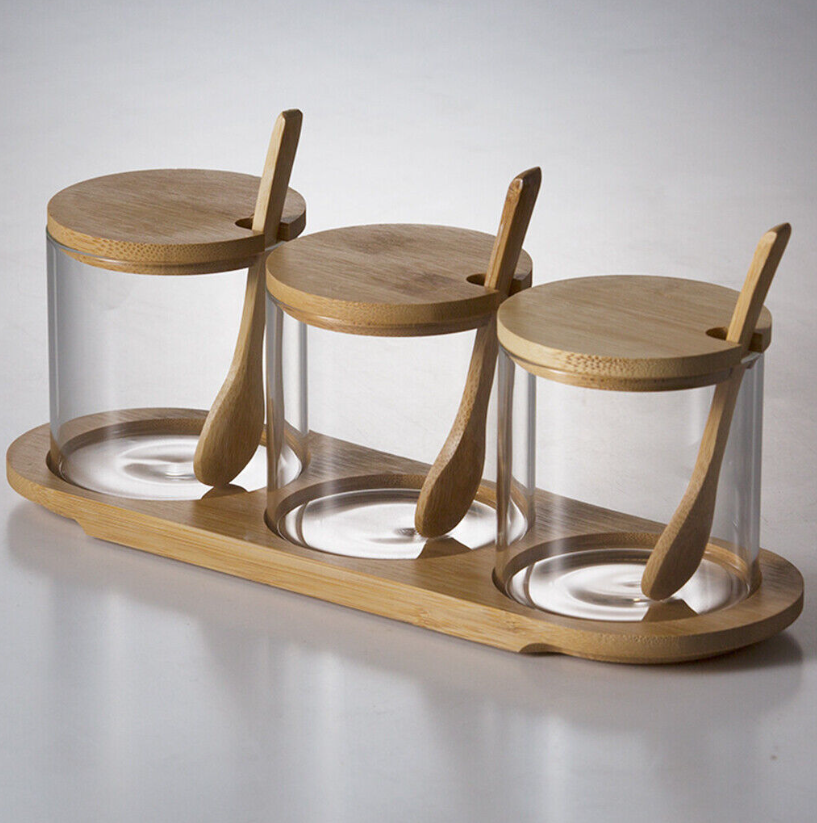 This spice Jars set are made from glass and bamboo.