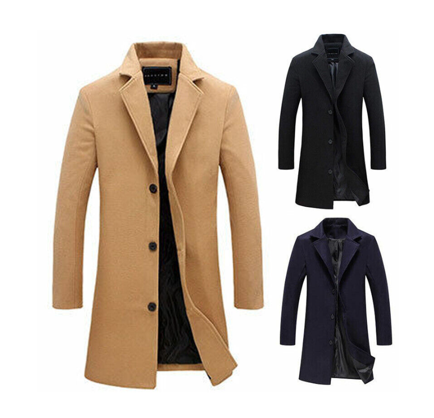Mens Winter Warm Formal Trench Coat Long Jacket Tops Smart Work Overcoat Outwear