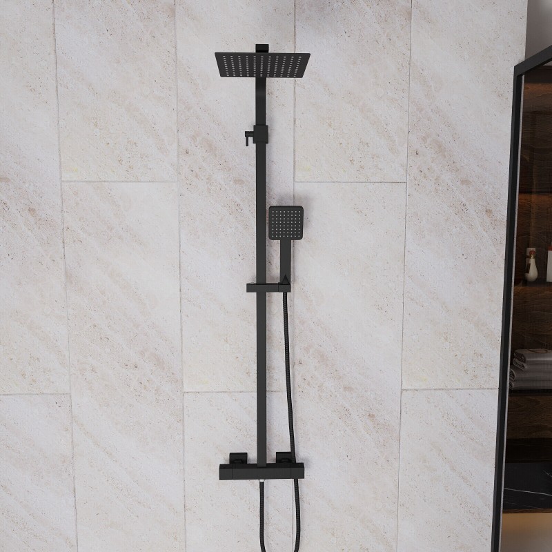 Modern Square Matte Black Exposed Thermostatic Mixer Shower Set With Shower Head