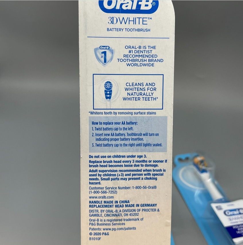 •     Oral-B 3D White AA Battery powered toothbrush with replaceable brush heads polishes stains away with 14,000 strokes per minute.