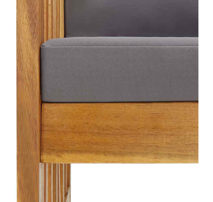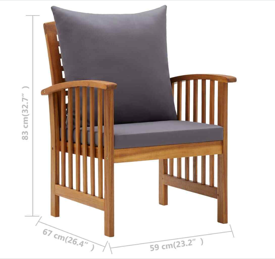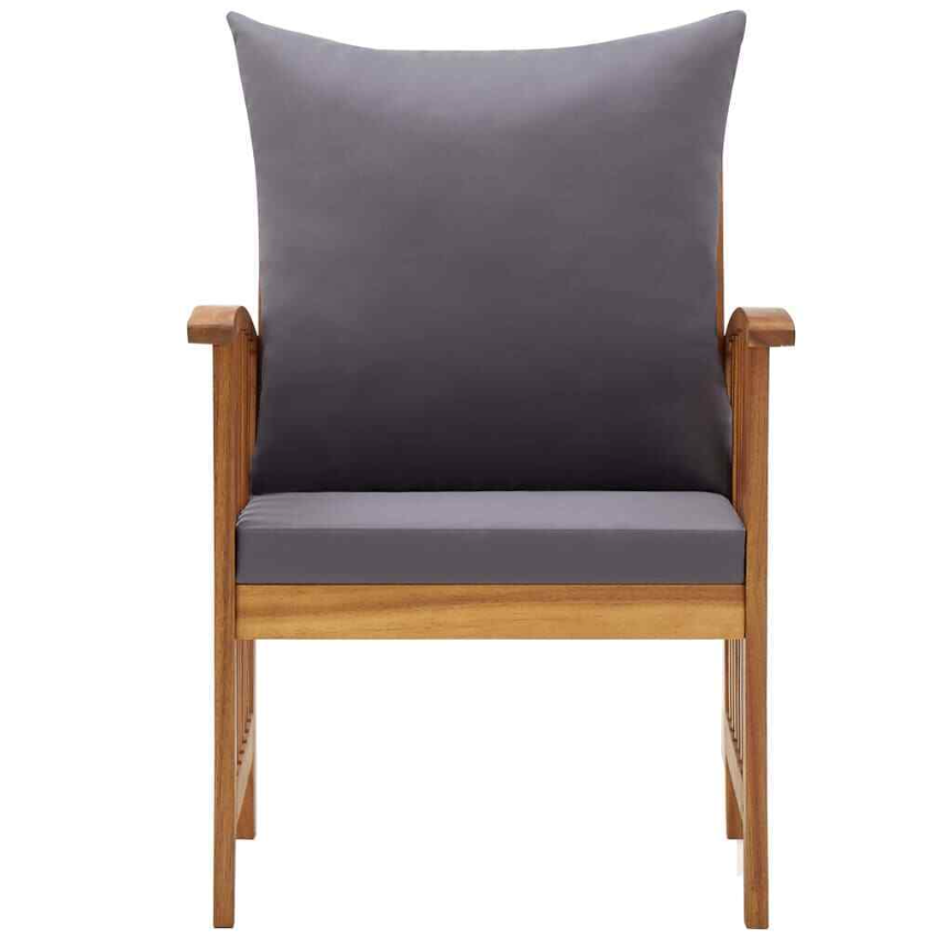 The outdoor chair is made of solid acacia wood with an oil finish, making it stable and durable. The craftsmanship and the beautiful wood grains make every piece of furniture well-defined and slightly different from the next. The seat cushion and back pillow add extra seating comfort to the chair.