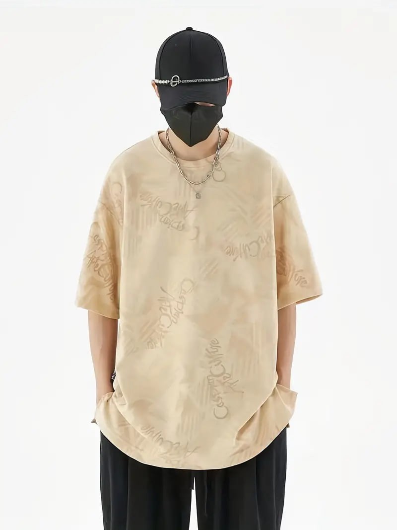 Plus Size Men's Casual Streetwear Tops Solid Textured Fashion Loose Drop Shoulder T-shirts
