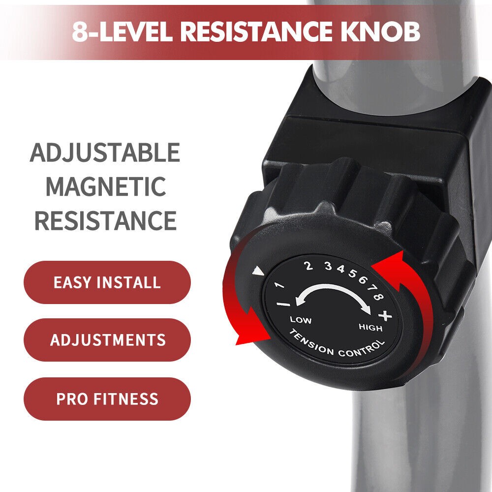 EIGHT RESISTANCE LEVELS, COMFORTABLE PADDED SEAT, Easy To Move, Super Quiet Magnetic Resistance, Comfortable Seat & Safe Handrail, Stable Length Adjustment, Adjustable Padded Seat & Safe Handrail, Quiet 8 Level Magnetic Resistance, LCD Monitor & iPad Holder, Big Comfortable Seat & Safe Handrail, 8 Levels Magnetic Resistance, LCD Monitor with Phone Holder, 7 Positions Seat Adjustment, Adjustable Non-slip Pedals, Adjustable Seat, Body-Fat Analysis, Calorie Monitor, LCD-Display, Magnetic Brake System