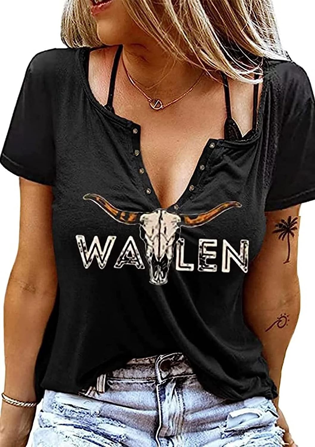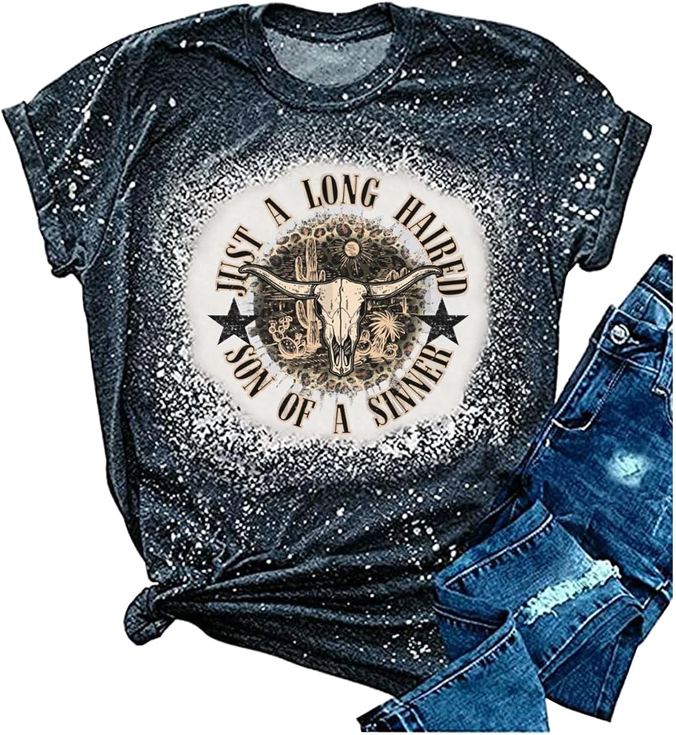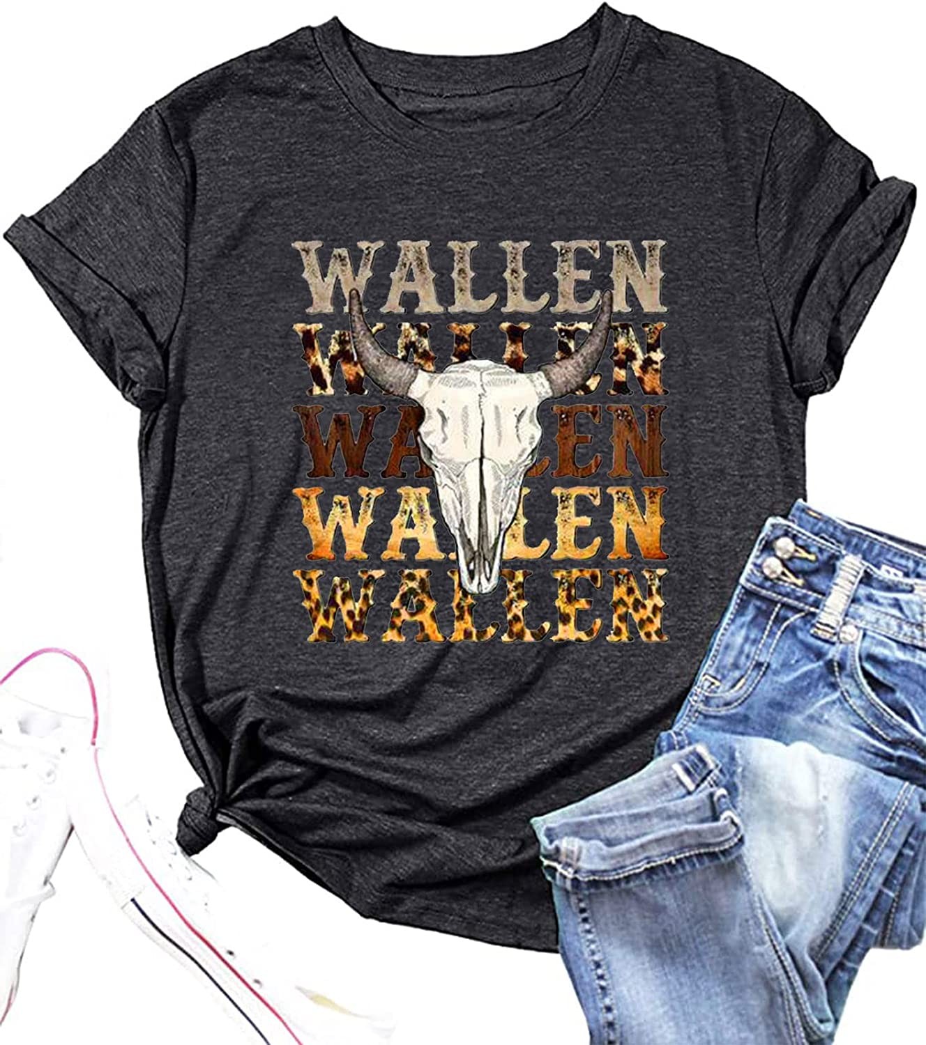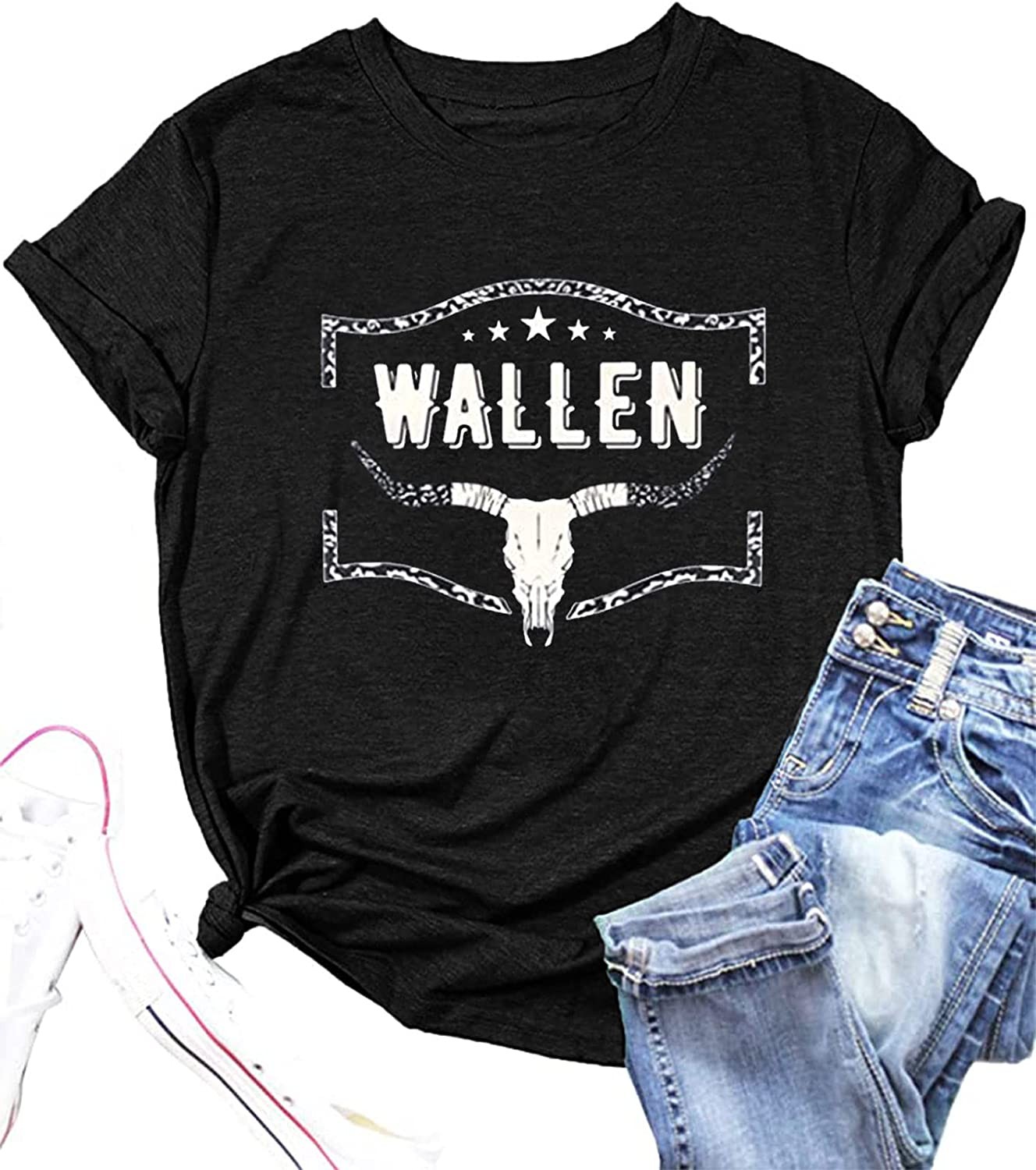 Retro Steer Skull Western T-Shirt Women Vintage Country Music Shirt Cute Cowgirl