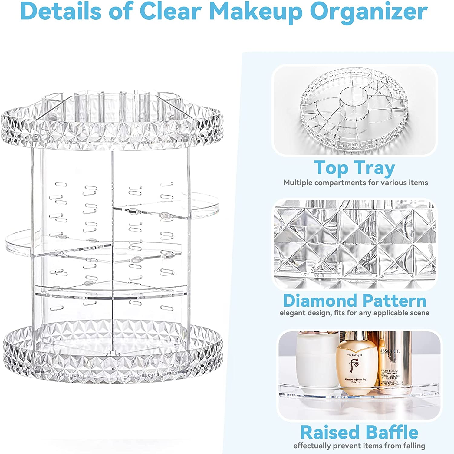 Rotating Makeup Organizer Spinning Makeup Organizer for Vanity, 360 Rotation wit