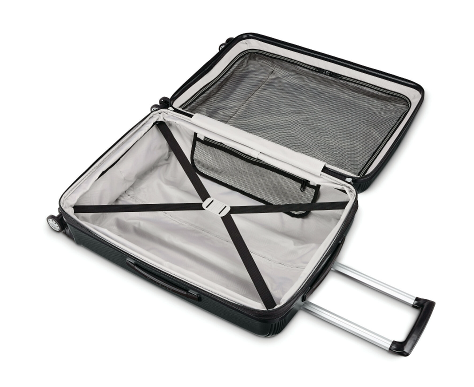 •Elastic tie-down straps, side mesh pocket for small items, zipped mesh divider for transparent neat organization