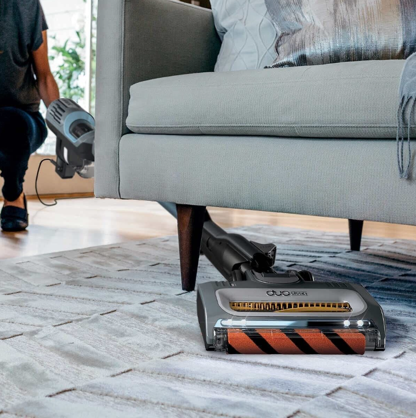 • DuoClean technology is a dual-brushroll system designed to deep-clean carpets and directly engage floors for a polished look.