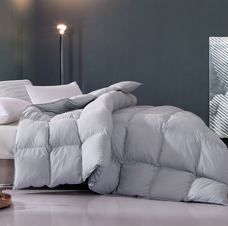 White/Grey 100% Cotton Fluffy Down Feather Comforter Duvet All Season Queen Size