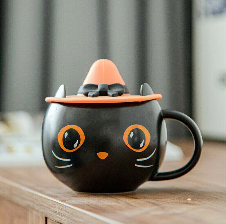 2021 Starbucks Black Cat Cup With Witch Cap Lid&Spoon Water Mug Halloween Gifts