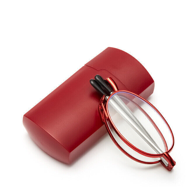 Unisex Metal Compact Folding Anti-Blue Light Reading Glasses W/ Case UV1.0~4.0