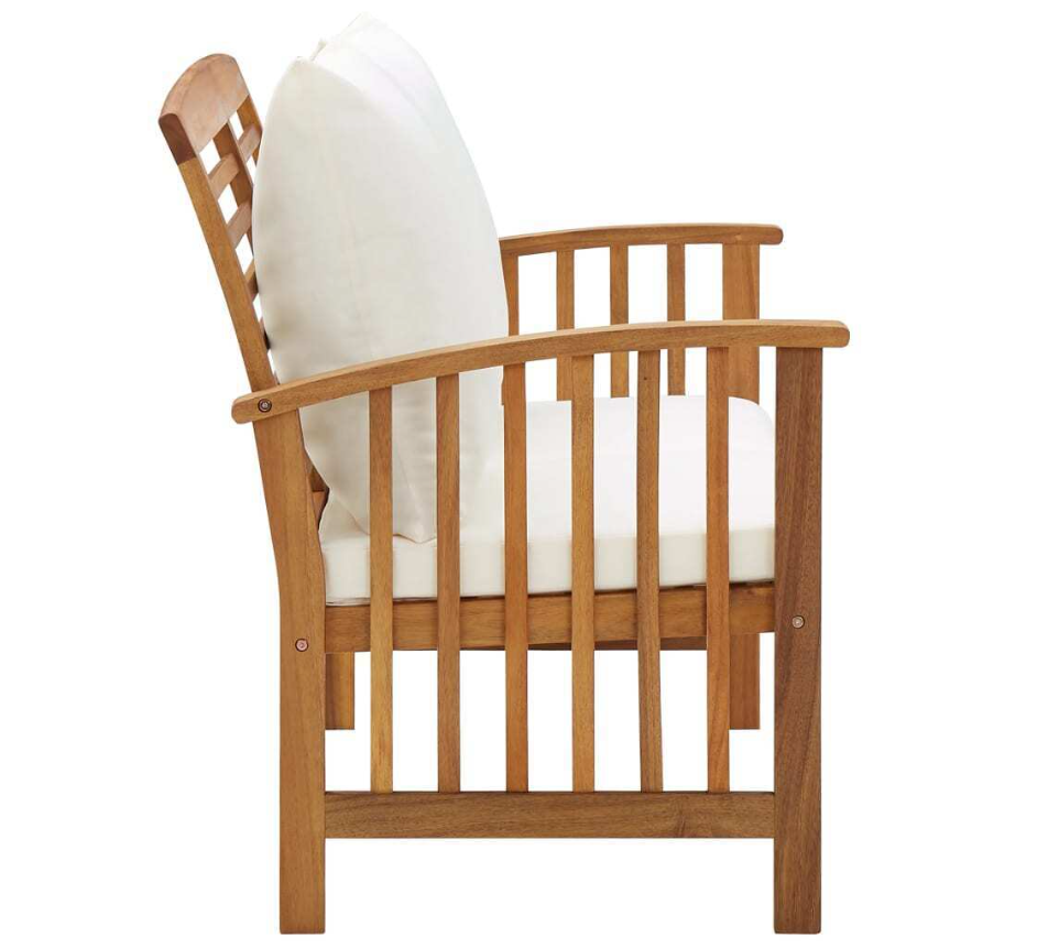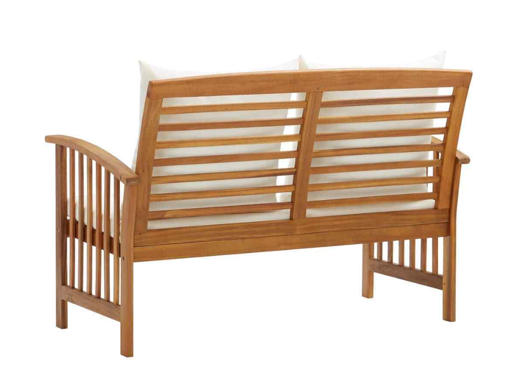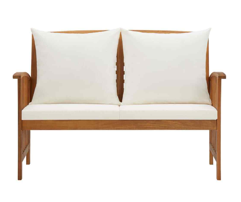 Product Description Vidaxl Patio Bench With Cushions 46.9" Solid Acacia Wood Vidaxl Patio Bench With Cushions 46.9" Solid Acacia Wood This Stylish Yet Practical Wooden Patio Bench Is Designed To Take Your Outdoor Living Space To The Next Level! The Outdoor Bench Is Made Of Solid Acacia Wood With An Oil Finish, Making It Stable And Durable. The Craftsmanship And The Beautiful Wood Grains Make Every Piece Of Furniture Well-Defined And Slightly Different From The Next. The Seat Cushion And Back Pillow Make The Bench Comfortable To Be Seated. The Backrest And The Armrests Add Extra Seating Comfort. Important Note: Colours And Grains Vary From Piece To Piece, Making Each Piece Unique; The Delivery Is Random.