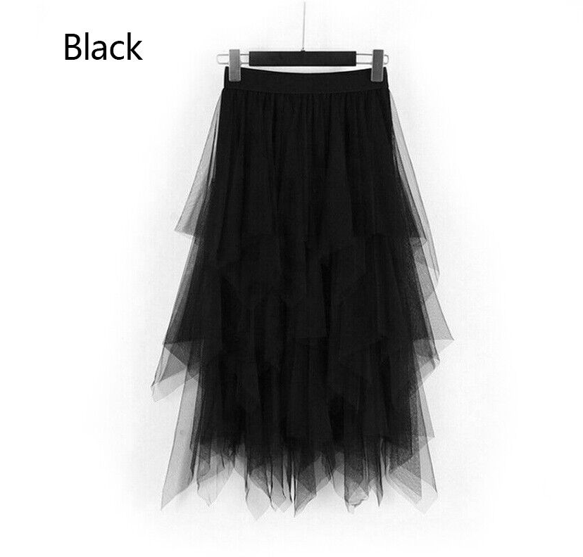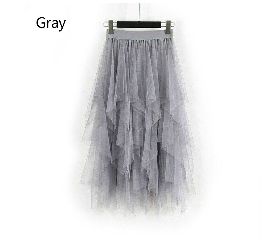 Product Name: Women Tulle Mesh Skirt Product Category: Skirt Color: White, Black, Pink, Khaki, Gray, Apricot Material: Mesh Size: Free Size: Length 82cm, Waist 62-102cm, Lining 45cm Packing: Opp Bag Packing List: Tulle Mesh Skirt x 1