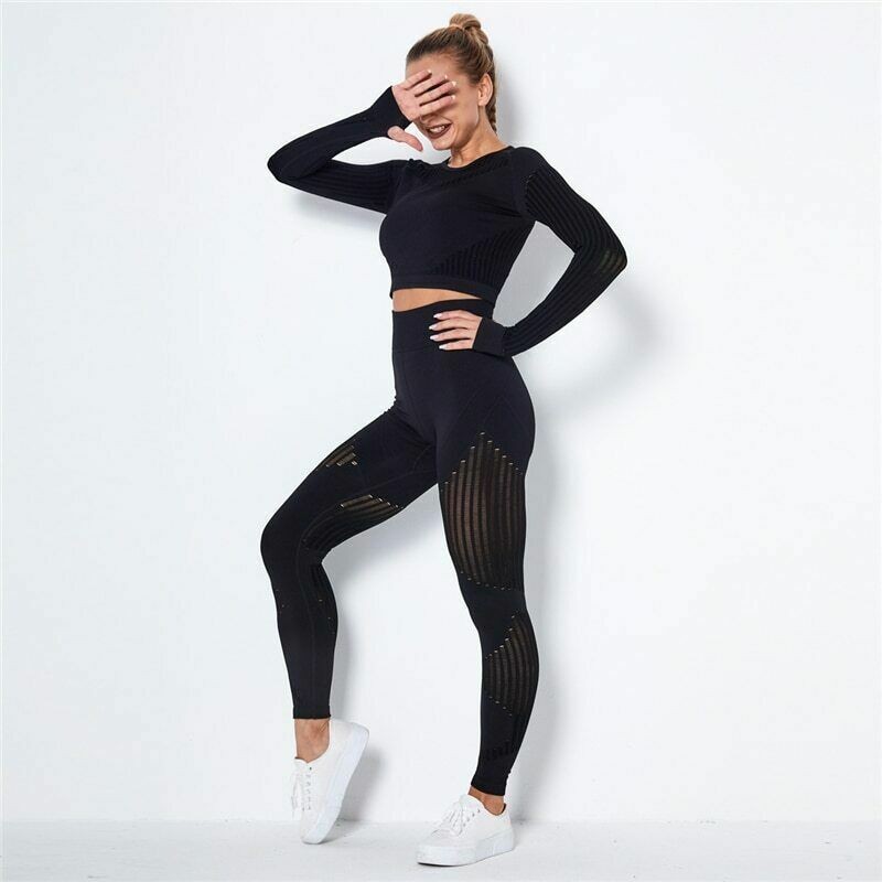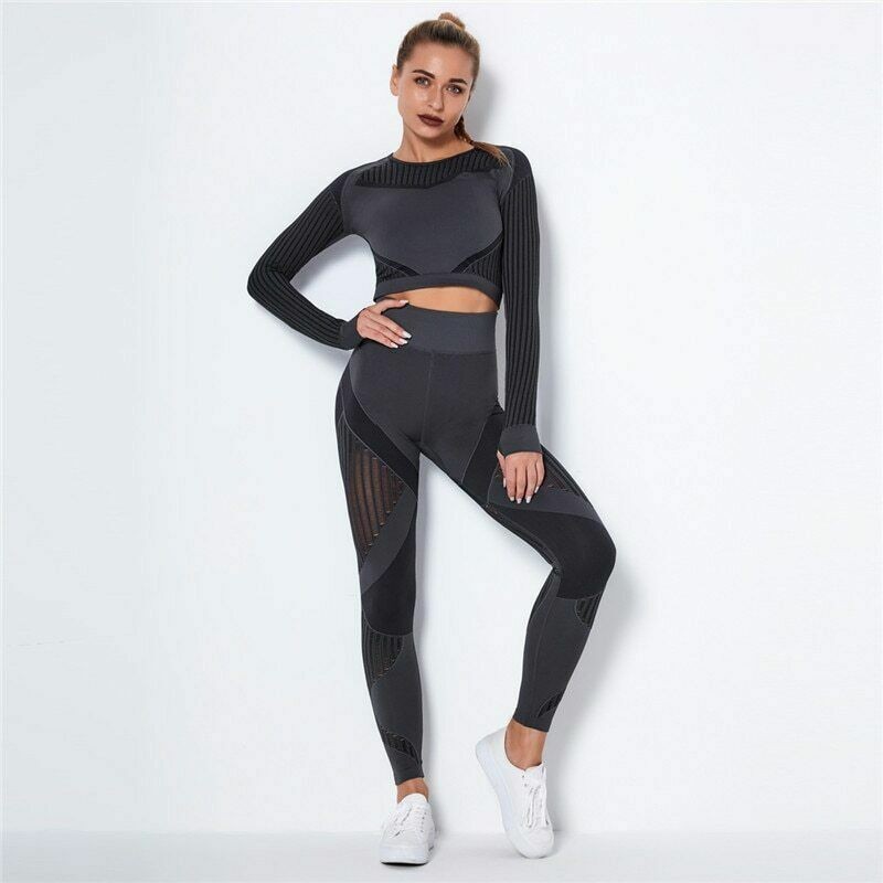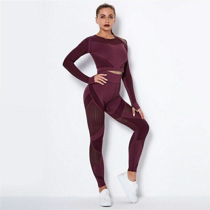 Women Yoga Set Sport Outfits Two 2 Piece Top Bra Leggings Workout Gym Suit Pants